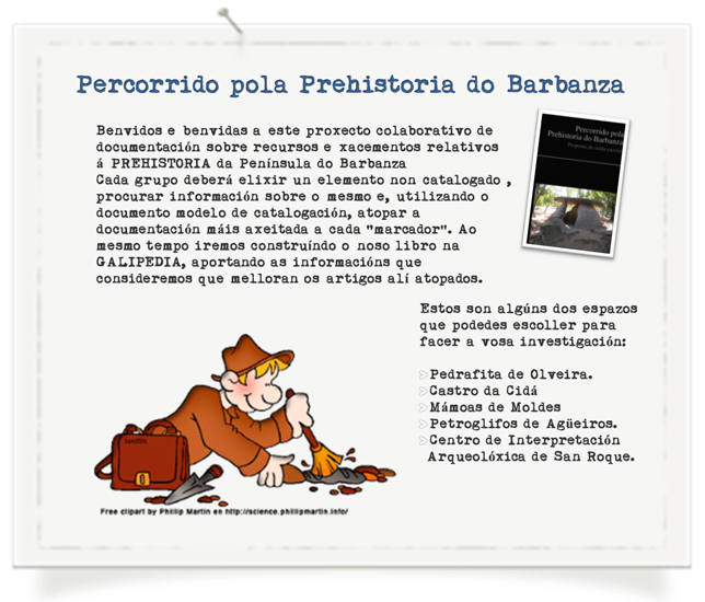 Cada Equipo deberá botar unha man para preparar a documentación do noso Percorrido pola Prehistoria do Barbanza
